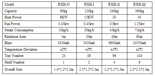 ·Machine materials adopt stainless steel.Mainly consists of heat source,blower,tray and shelf.
